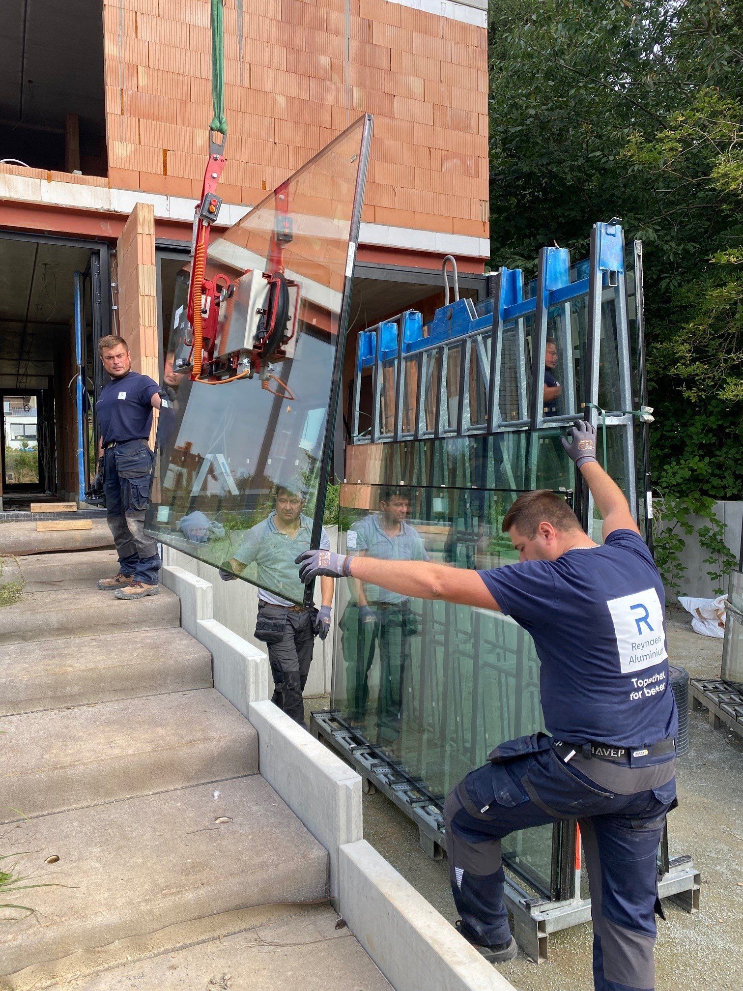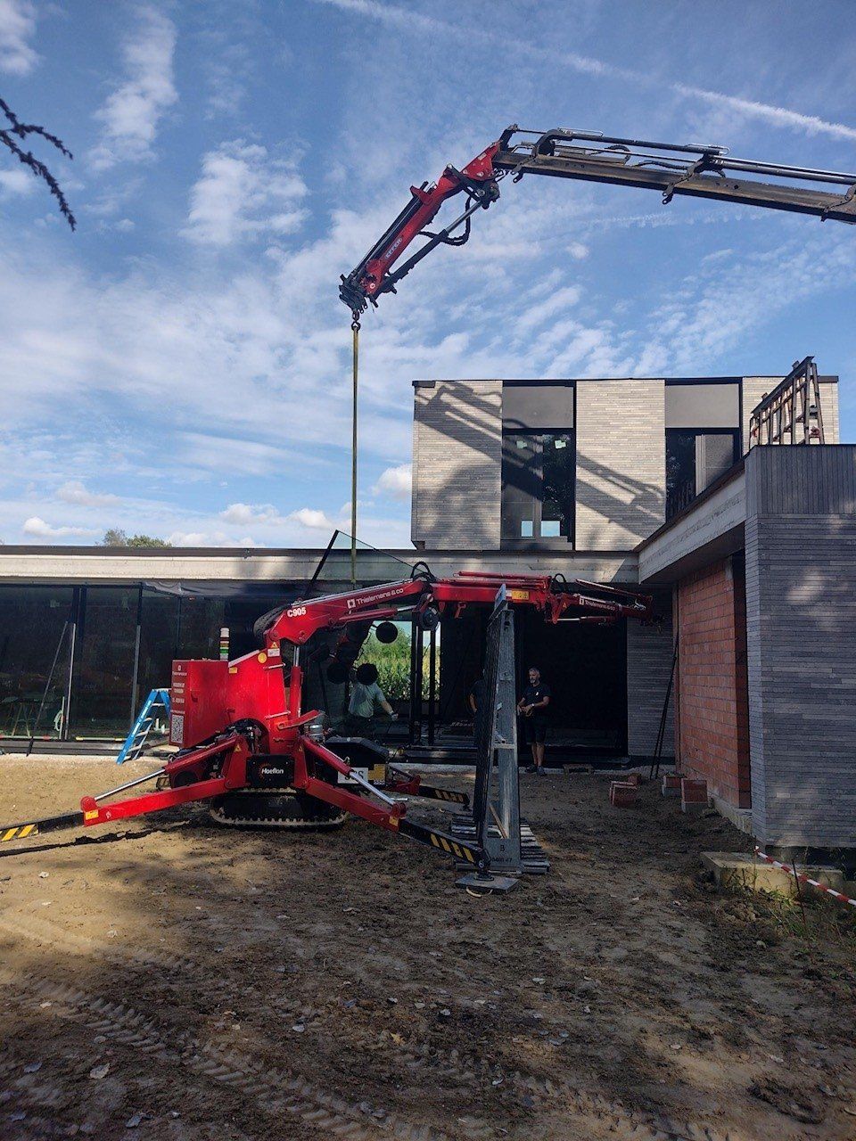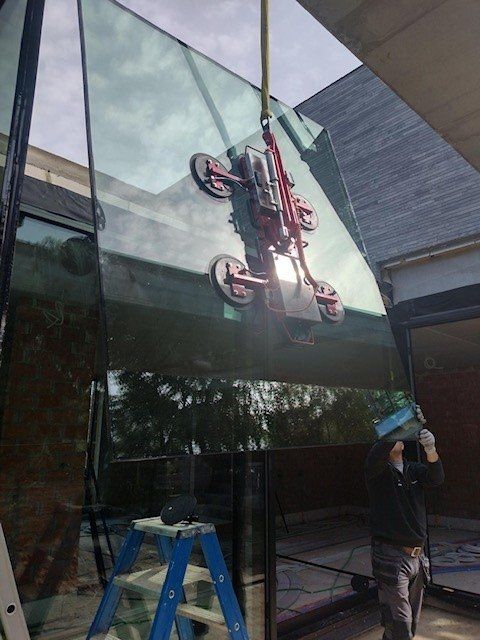 Wij beschikken over een vrachtwagen met kraan en een minikraan en kunnen zo moeilijk bereikbare beglazingen vervangen in je woning.